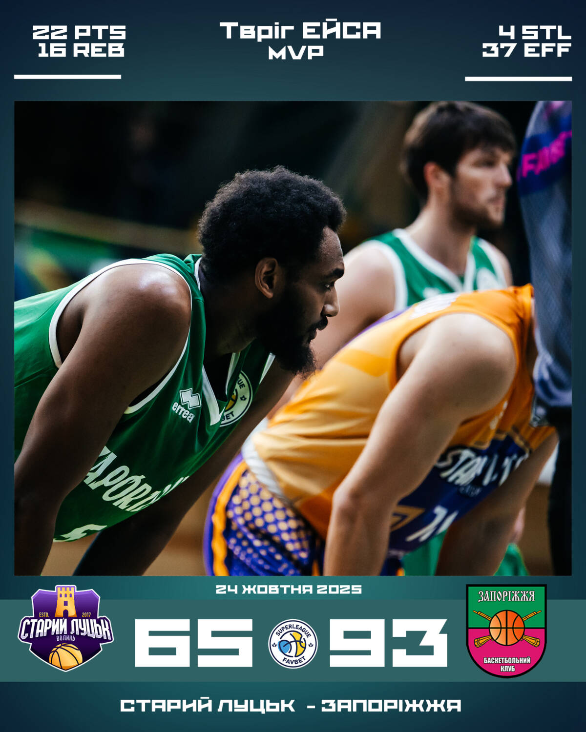 24.10.2025. Суперліга Favbet. Манеж КФВ (Івано-Франківськ). БК «Старий Луцьк» – БК «Запоріжжя» 65:93 (14:16, 18:24, 10:28, 23:25)