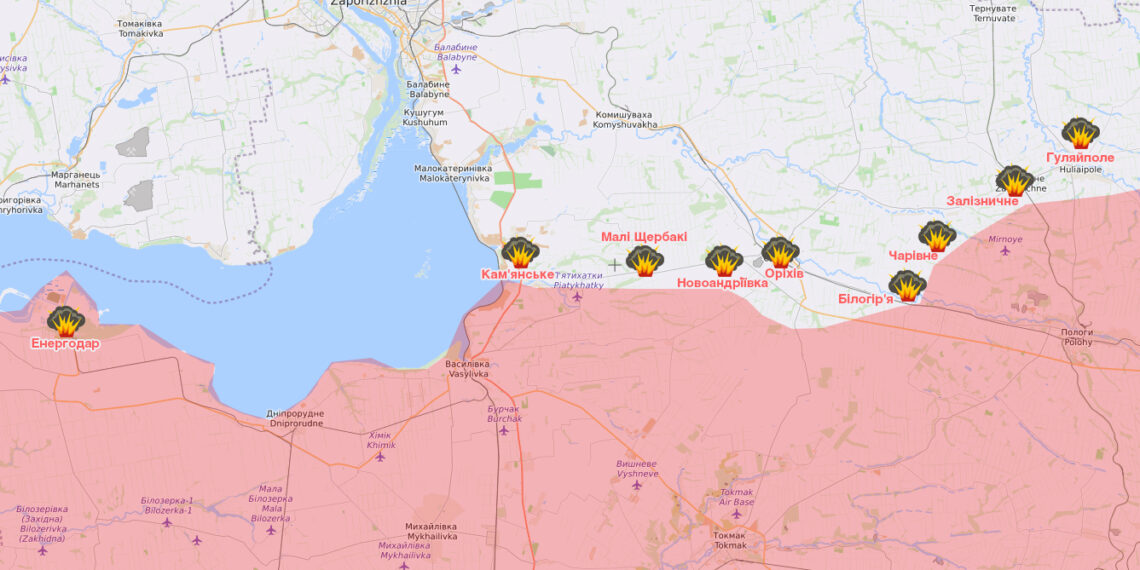 Сьогодні ворог обстріляв райони по всій лінії зіткнення, обстріляв цивільну інфраструктуру у районах населених пунктів Оріхів, Малі Щербакі, Гуляйполе, Залізничне, Чарівне, Білогір’я, Новоандріївка та Кам’янське. Генштаб ЗСУ.