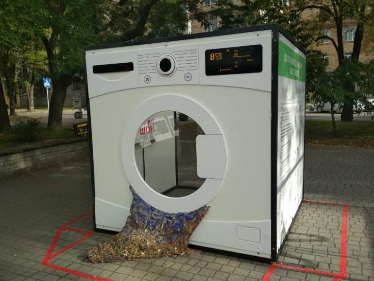 - А гігантська «пральна машинка», що наочно демонструвала «веселку» фосфатів, що забруднюють річки, користувалася найбільшою цікавістю відвідувачів.