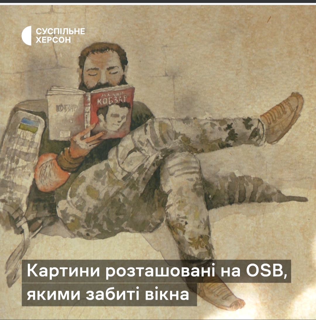 Замість вибитих вікон у Будинку вчителя розмістили картини херсоснької художниці Світлани Юр’євої, присвячені військовим.