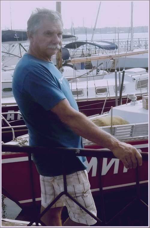 На снимке, который я сделал вчера, 14 сентября, запечатлен член совета Запорожского крейсерского яхт-клуба Александр Жук. Он 29 лет назад сам, своими руками, построил яхту, которая называется «Крок», и с тех пор, в качестве ее капитана [а экипажем была его семья], участвовал во множестве регат и походах. И будет участвовать дальше.