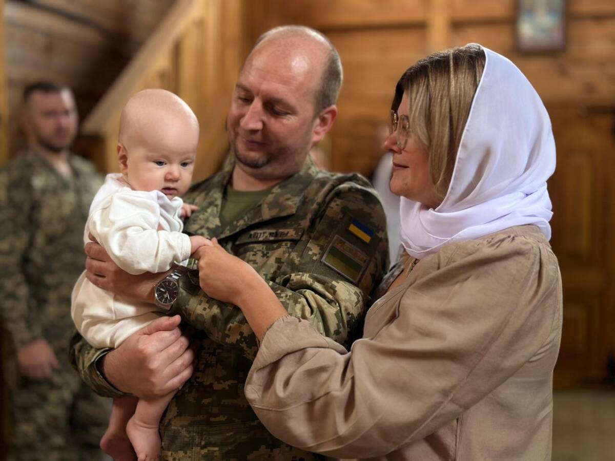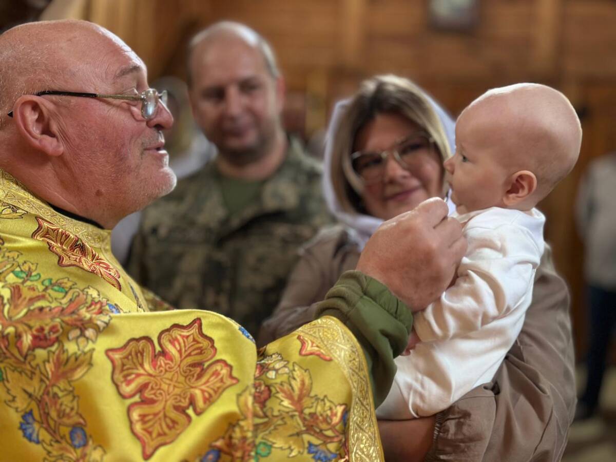 – У цей особливий день поєдналося духовне народження Давіда з непохитним духом батька-захисника, який з перших днів повномасштабного вторгнення боронить рідну землю, аби його дітки ніколи не знали страху війни та зростали в любові, під мирним небом, – зазначено у повідомленні.