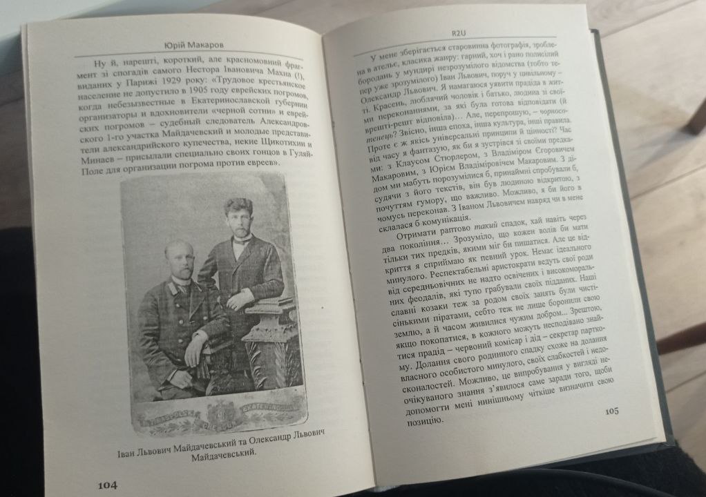 Тепер щодо дат та особистостей. Фотографія генеалогічного вже змісту на 104-й сторінці книги R2U Юрія Макарова, на якій – прадід Іван Львович Майдачеський та та рідний брат прадіда Олександр Львович. Бо це – саме той Олександр Львович, про якого варто згадати з приводу ювілею нашої бібліотеки.