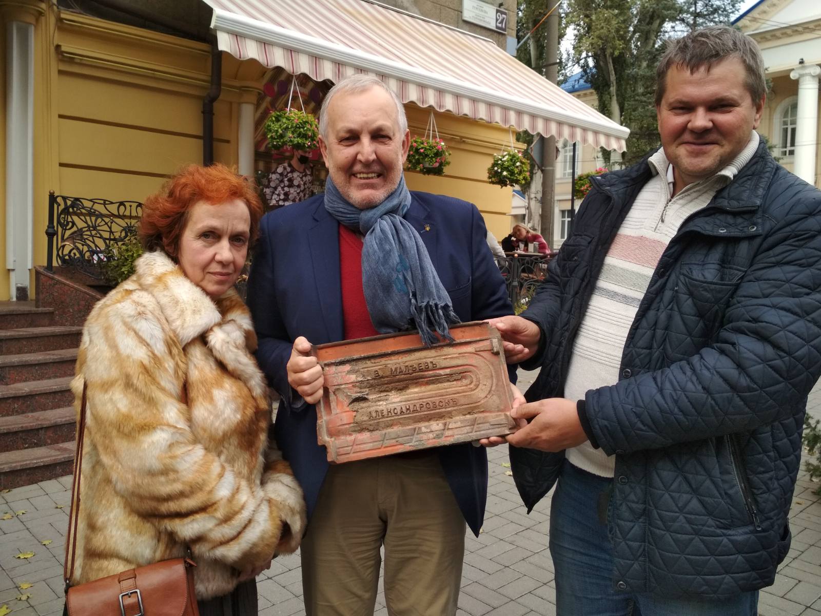 Шоб додати згадці матеріальності, Юрія Макарова, який приїхав до Запоріжжя на один із мистецьких ArtForumів на запрошення Тетяни Орлової, ми з істориком Валерієм Стойчевим запросили на екскурсію по Старому Олександрівську. Репортаж, надрукований в одному із запорізьких журналів, також став експонатом виставки до ювілею бібліотеки. Ми відвідали передмістя Олесандрівська, де колись стояли будинки родини Майдачевських. Жоден – ані Олександра Львовича, ані Івана Львовича – не зберігся. Тож, знайдена дахівка дореволюційних часів стала Юрію Макарову сувеніром.