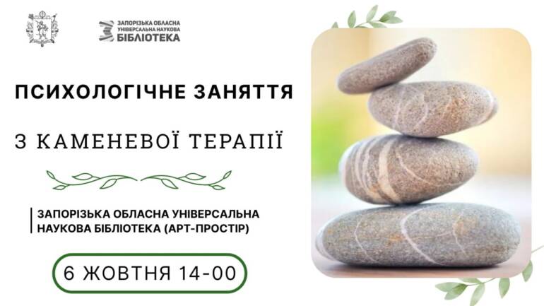 Запорізька обласна універсальна наукова бібліотека запрошує в Арт-простір на психологічне заняття з каменевої терапії.