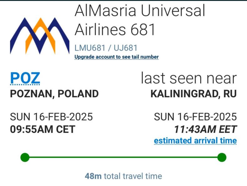 На фото: дозаправку узгоджено, літак UJ681 вже здійснив посадку в Калінінграді.