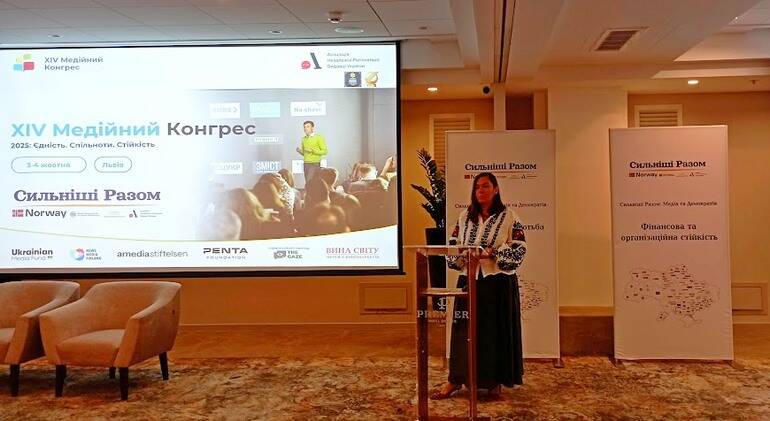 «XIV Медийный Конгресс в этом году проходит под лозунгом «Единство. Сообщества. Устойчивость», — акцентировала директор АНРВУ Оксана Бровко, — Именно эти три составляющие помогают независимым медиа держаться и развиваться в самые трудные времена. Мы благодарны нашим иностранным партнерам за поддержку региональных медиа. Во время войны независимые региональные медиа — это нерв общества, который реагирует первым, и голос, который нельзя заглушить».