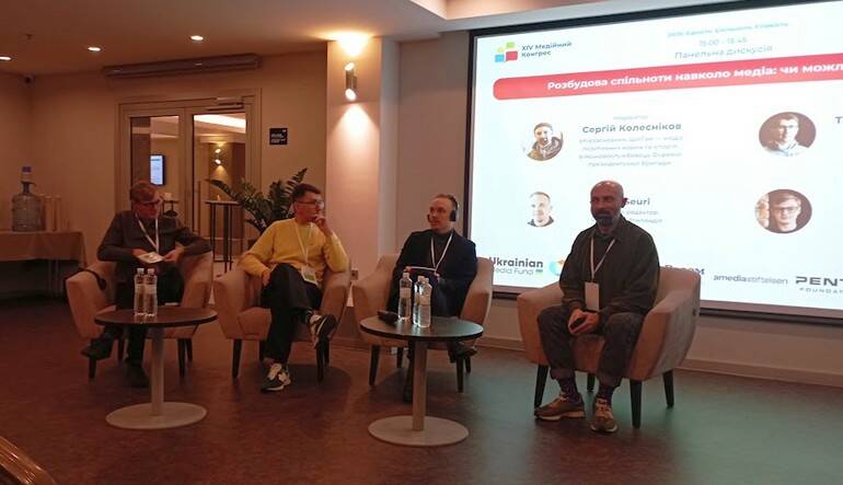 О возможности успеха в контексте развития сообщества вокруг медиа говорили соучредитель медиа позитивных новостей и историй ШоТам Сергей Колесников, соучредитель и руководитель The Ukrainian Media Тарас Прокопишин, главный редактор nikvesti.com Олег Деренюга.