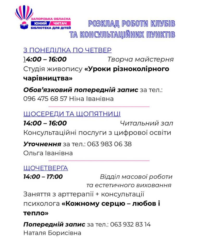 Каждый воскресный день в Запорожской библиотеке для детей «Юный читатель» насыщен встречами, красками, детскими радостями.