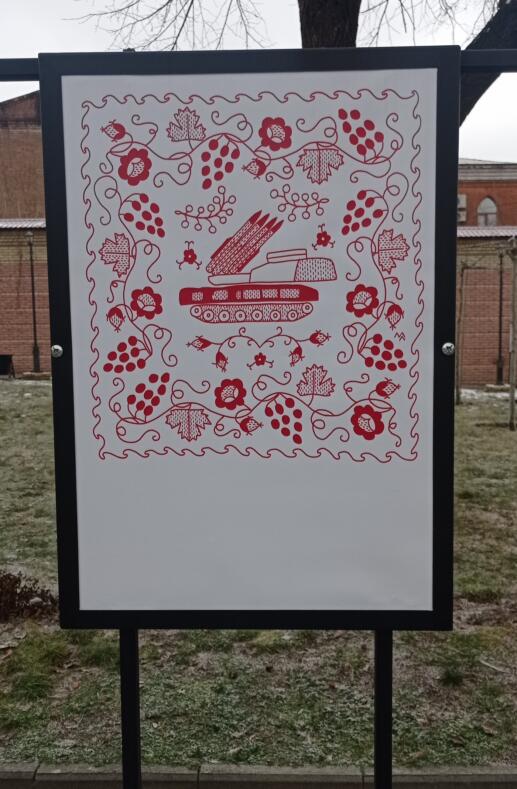 Подільський килим є яскравим проявом української традиційності, за існування якої ми зараз боремось. Хочеться відтворювати та поширювати її, щоб любити ще більше. Всі малюнки зібрані з традиційних орнаментів для естетизації нашого з вами воєнного побуту. Українська візуальна культура є найзрозумілішим для мене аспектом традиційності. Це моя спроба естетизації побуту та візуальне представлення традиції – того, за що ми віддаємо свої життя зараз», – прокоментувала Марта Лешак свої роботи.