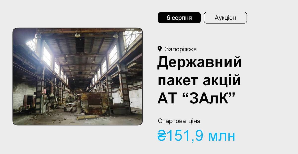 Аби припинити накопичування збитків та подальше знищення підприємства, державний пакет акцій товариства «ЗАлК» виставлено на приватизацію.