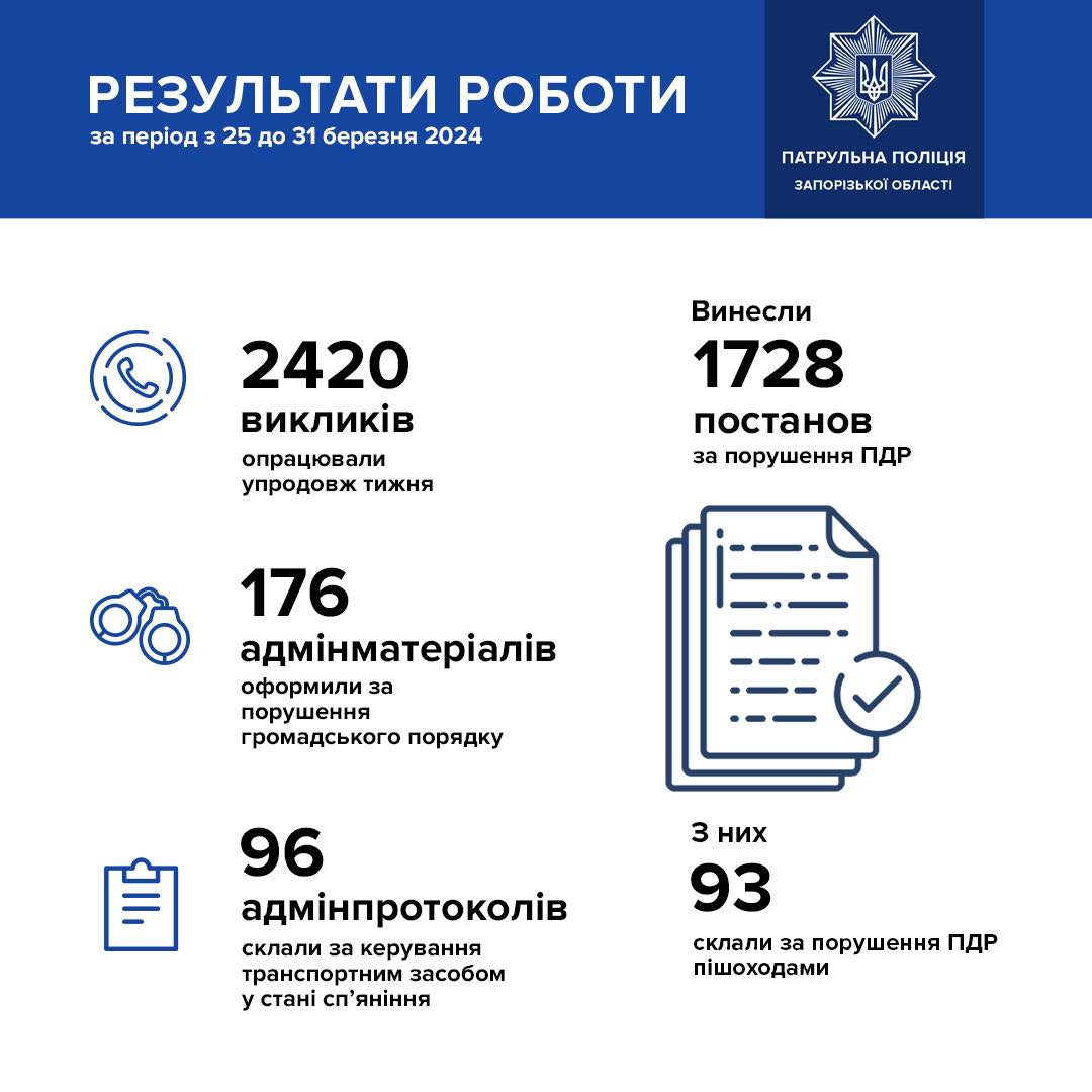 До вашої уваги короткий звіт про роботу запорізьких патрульних за минулий тиждень