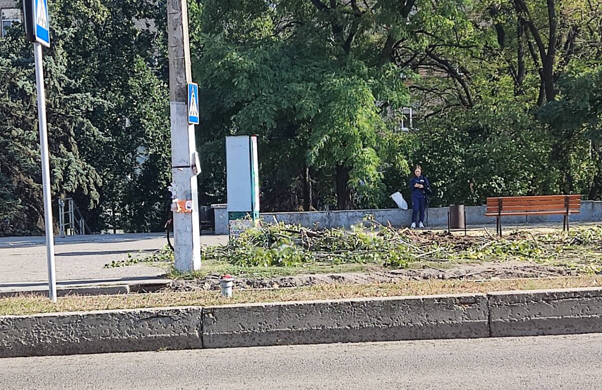 На вулиці Перемоги у Запоріжжі, вздовж тротуару та біля лікарні швидкої та невідкладної допомоги (5-та), у четвер, 2 жовтня, комунальники спиляли десятки високих дерев, в основному, тополь.