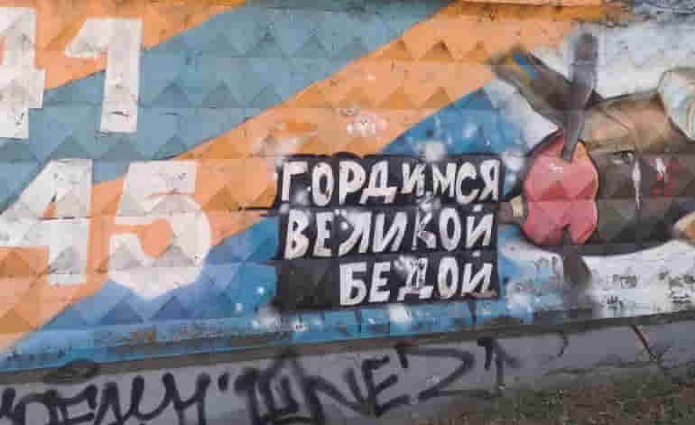 Наприклад, на паркані коло 5-ї лікарні, який був у 2013 році розписаний графіті до 70-річчя визволення міста від фашистських загарбників, чиясь патріотична рука на одному зі слоганів акуратненько зафарбувала один склад. І варварством це не назвеш, бо сенс вірний…