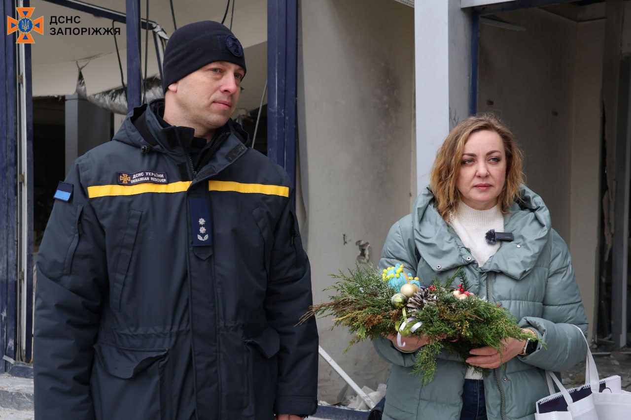 У Запоріжжі сталася неймовірно зворушлива подія: жінка, яка вижила після страшного ракетного удару по медичній клініці 10 грудня, зустрілася зі своїм рятівником, співробітником ДСНС Сергієм Цопою.
