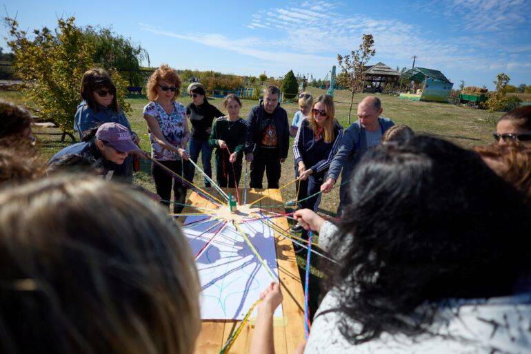 Учасники події розповіли, що у теплий жовтневий день представники і представниці Ради відновлення Запоріжжя та партнерських організацій зібралися для навчання та спілкування у чудовій локації степової України – садибі зеленого туризму «Етносело» під Запоріжжям. Ділилися досвідом, обговорювали важливі робочі моменти, надихалися природою та трішки рефлексували, раптом опинившись поза містом, яке майже щодня під обстрілами.