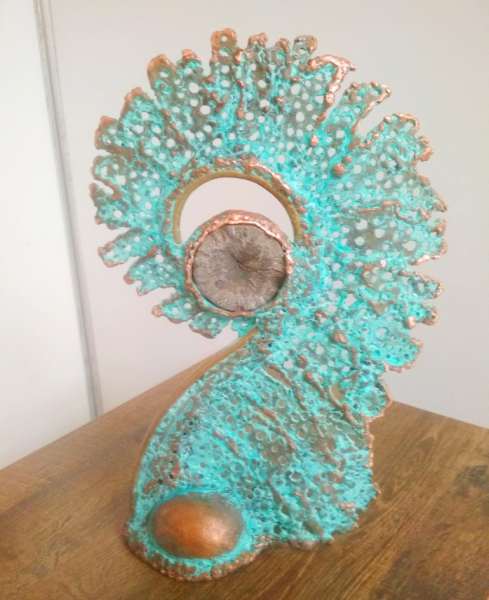 Взагалі у більшості творів, які можуть побачити запоріжці, до металевої «бази” майстер долучає інші матеріали – чорноморську гальку, дністрове каміння, кольорове скло… Природні і штучні, вони надають витворам неповторної образності. Яку кожен сприймає по-своєму. І не факт, що з моїм описом творів, який я навела на початку, погодиться інший поціновувач мистецтва.