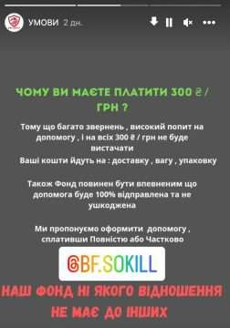 А ці аферисти просто на своїй сторінці вказали причину того, чому просять гроші за передачу допомоги.