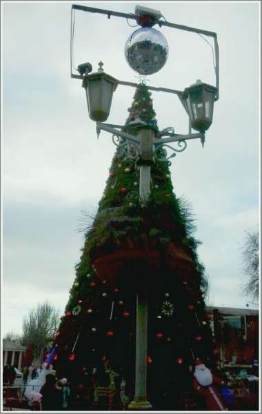 Запорожцев не испугал морозно-ветреный день, который выдала сегодня проказница зима: в эти минуты на площади Маяковского, где, как известно, находится главная елка города, людно и шумно. Под хорошую музыку можно и потанцевать, если душа движения просит, и подкрепиться – есть и мясные деликатесы, и сыры аппетитные присутствуют. Ну а для бодрости глинтвейн ароматный  имеется. Его, похоже, с утра пригубили два Санта Клауса, присматривающие за порядком на рождественской площади: один уже на ногах еле держится – хорошо, что его предусмотрительно к елке страховочным ремнем прихватили, другой, правда, пока  ничего себе, только усами усиленно шевелит, как таракан перед свадьбой. А вот снеговик рад всем: детям, взрослым. Всех приветствует, всем улыбается. Чувствуется, что под снегом у него доброе сердце скрывается. Хоть и ледяное) Только древний скиф, устроивший себе лежбище неподалеку от снеговика, не реагирует на радость соседа: я, мол, не местный, гуляйте без меня)
