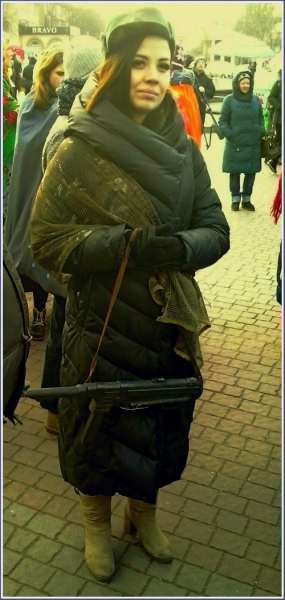 Еще на площади я случайно встретил… ангела. Рождество ж без чудес не бывает. Вот ангел и появился. Причем как-то незаметно. По слову, видно, чьему-то волшебному. А недалеко от ангела девушка с огромными, задумчивыми глазами всматривалась куда-то мимо меня – своего ангела, наверное, высматривала. Что характерно, у девушки на правую руку  – вместо изящной дамской сумочки, был наброшен ремень с изящным… «Шмайсером». С характером девушка, однако.